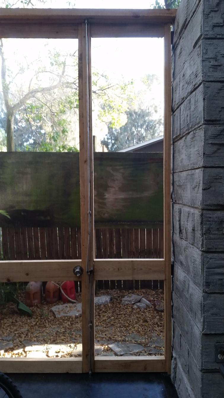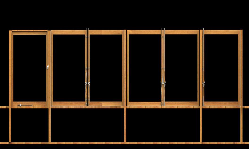 Right: two pair of doors: 3’0”x9’0” each leaf. Throw bolts at each leaf. |