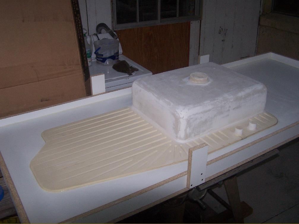 The counter has a recessed strainer surface sloped to the sink with ridges set level to support a drain rack, glasses, cutting boards, etc. The Grasshopper 5 axis CAM definition that we developed was used to generate the carving code for the foam sink form. This ensures positive, uniform slope at the bottom surface, and uniform, curved corners that will hopefully be easily cleaned.