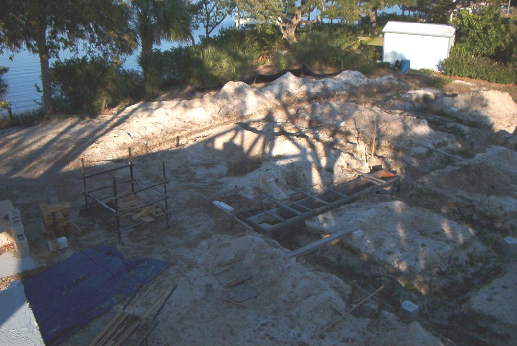 Being that the project is in a high velocity flood zone, the pool had to be integral with the foundation system—the precast concrete piles & the massive grade beams, so the pool shell had to be formed next & 2 of the integral grade beams had to be done in shot-crete when the pool was shot. |