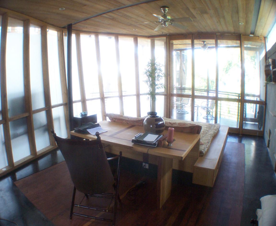 Master bed frame w/ desk headboard. Cypress plywood, Eucalyptus. |