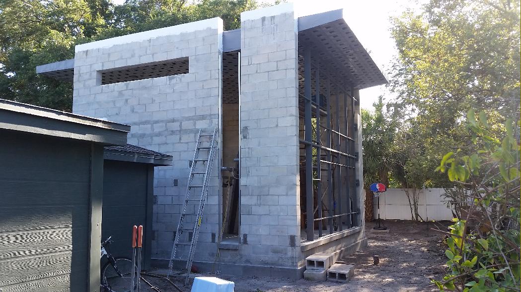 Next Phase: Exterior Insulation & Synthetic StuccoPrevious Phase: Roof PlaneGlazing framing at the north wall.