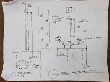 Below: sketch of the sliding track adapter brackets |