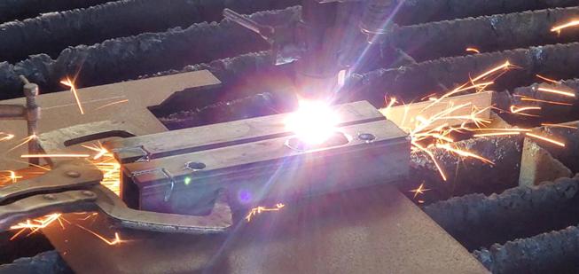 The 5 axis rotary plasma is used to cut the pipe and the electrical wiring holes in it. |