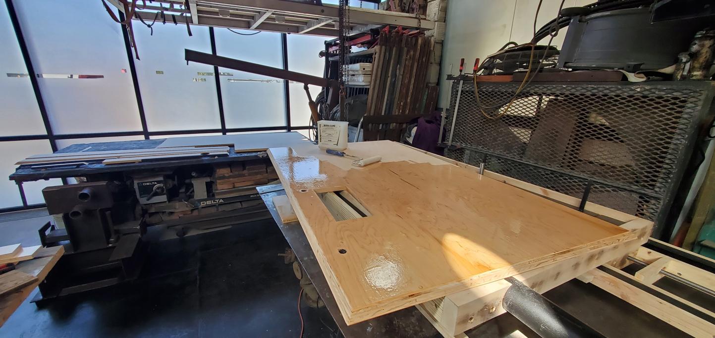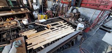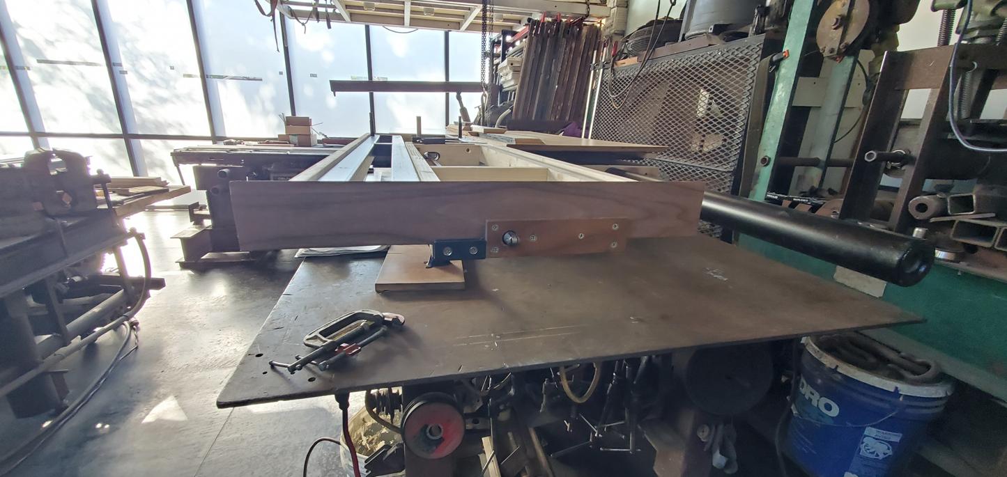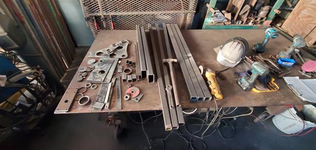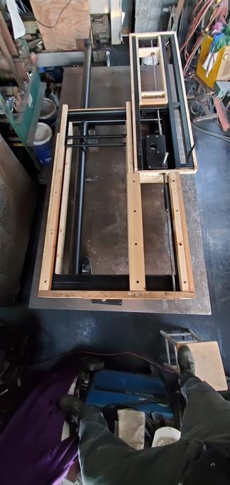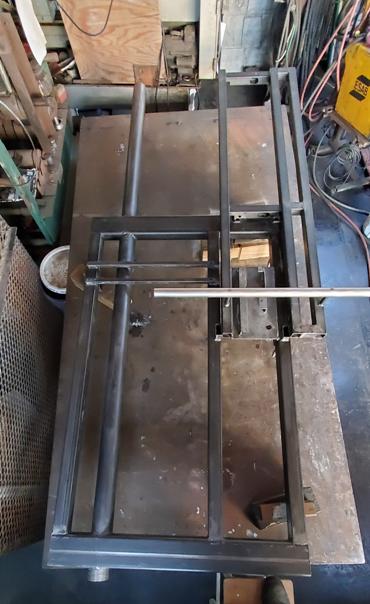 The shop is cleared (well, as much as possible) and parts are being cut on the cnc plasma & with the old-school 14” chop saw from stock sheets, tubes, pipe . . .