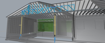 Below: the Rhino Model of the east truss in the attic space. |