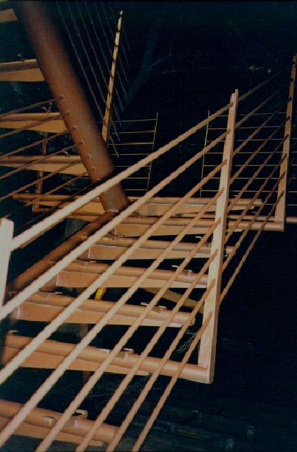 Self Supporting Stair with mezzanine level railing and cantilevered balcony. 1999