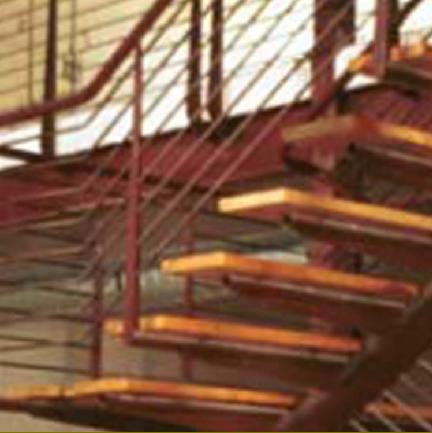 Right: Stair in fabrication location at Calvino Architecture Studio. Note the steel brace installed on the roof of the shop.