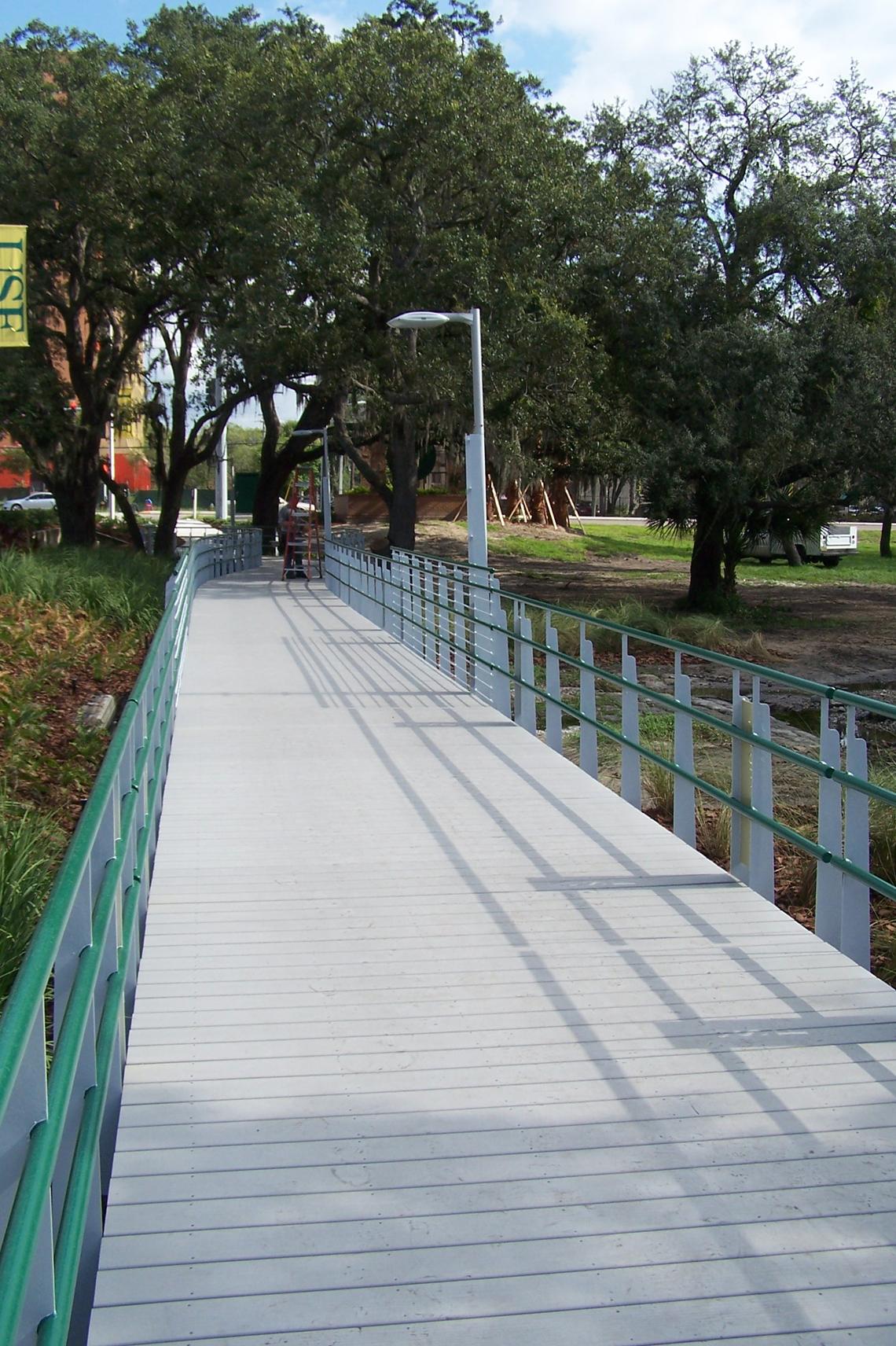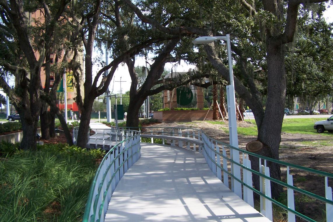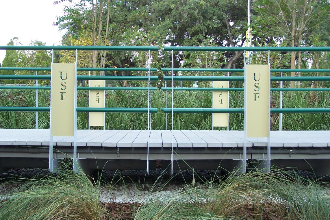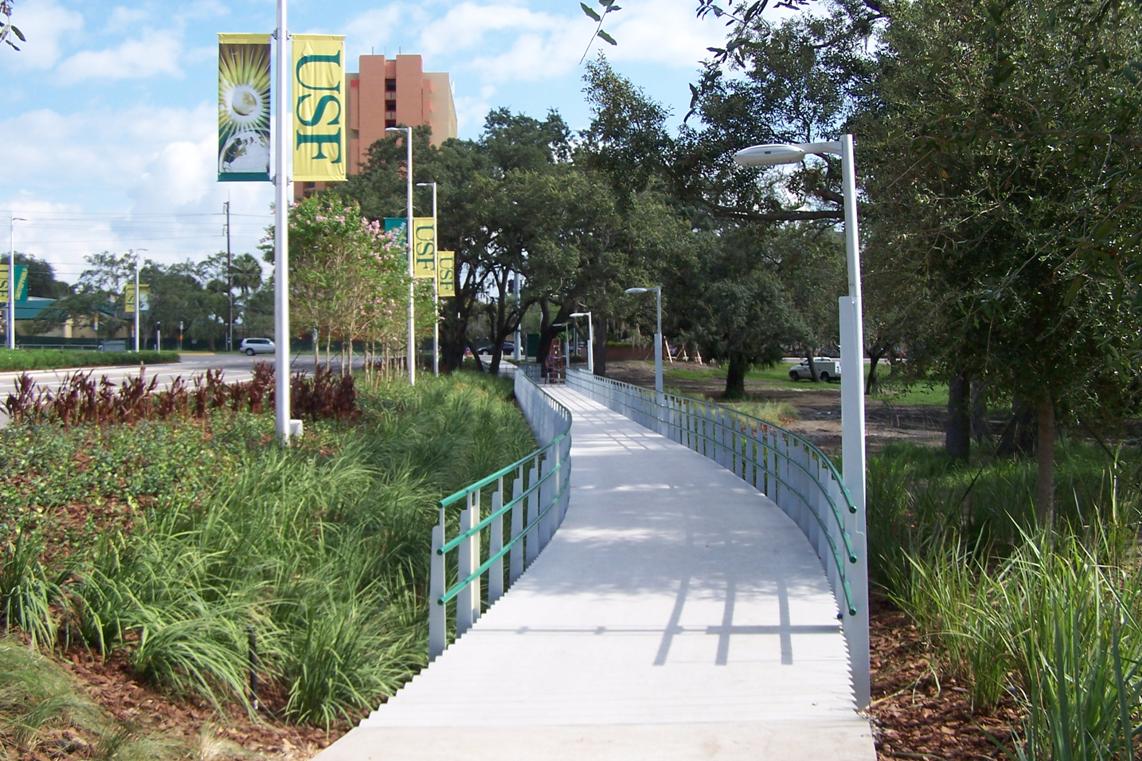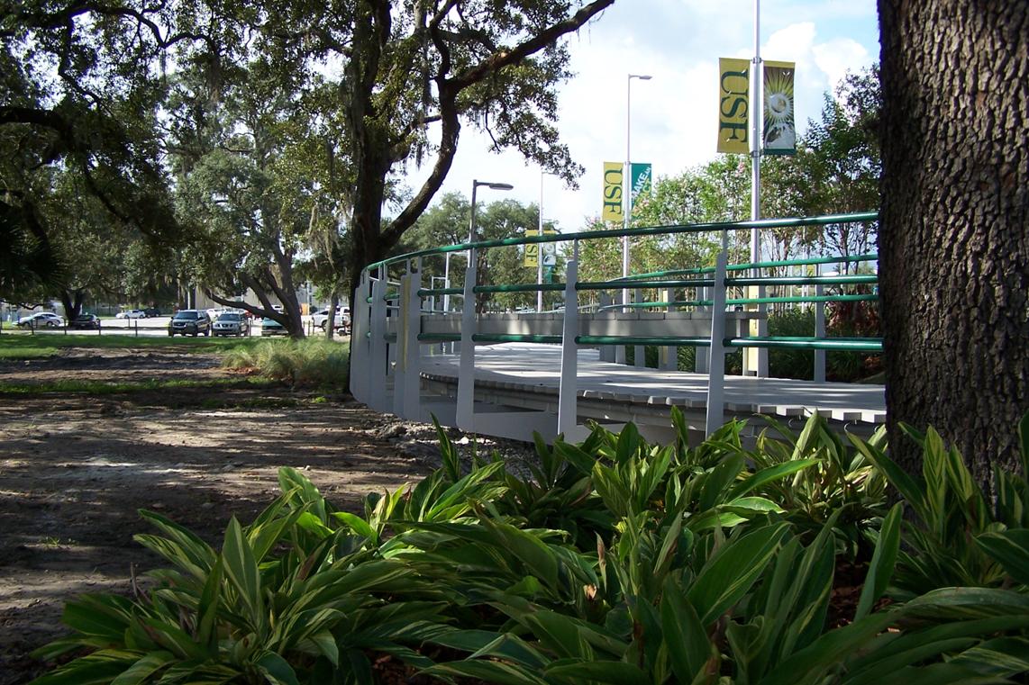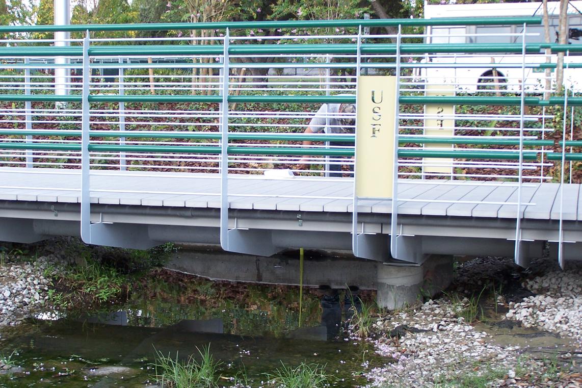 Project Location: USF, Tampa Boardwalk Design: Calvino Architecture Studio Site Engineering: Hamilton Engineering, Tampa, FL Construction Manager: Williams Company, Tampa, FL Steel Fabricator: Unlimited Welding, Orlando, FL. Concrete Piles: HJ Foundation, Miami, FL. Painting Contractor: Service Painting Contractors, Tampa, FL Composite Decking: Errington Construction, Clearwater, FL.