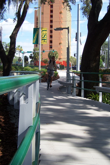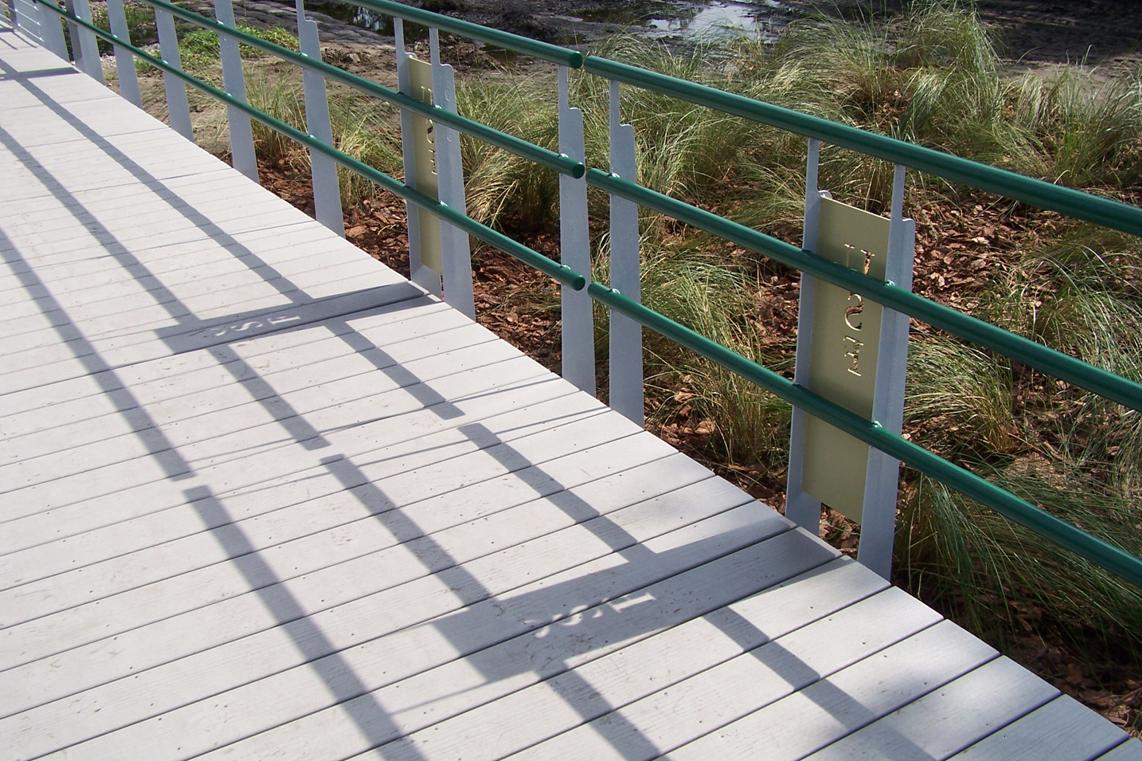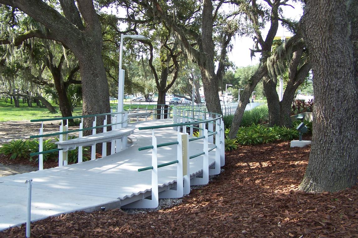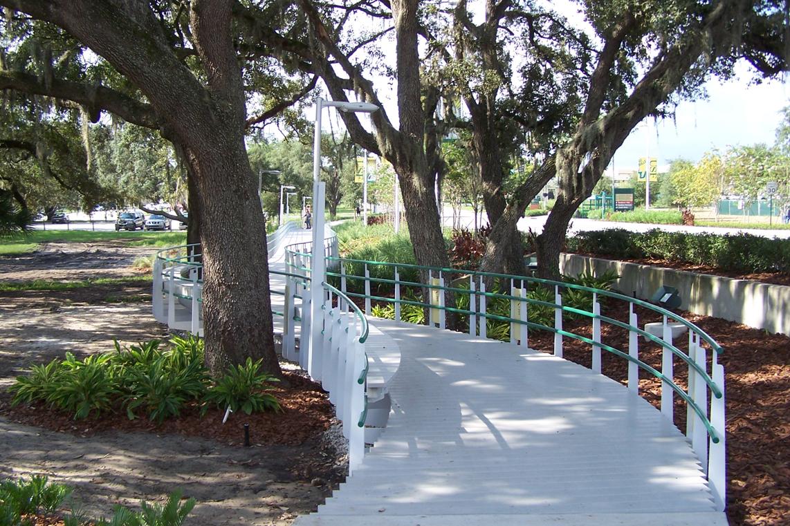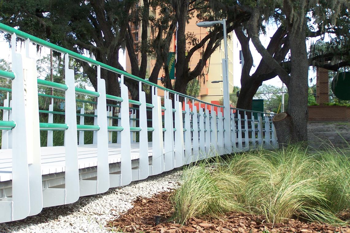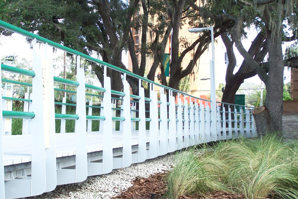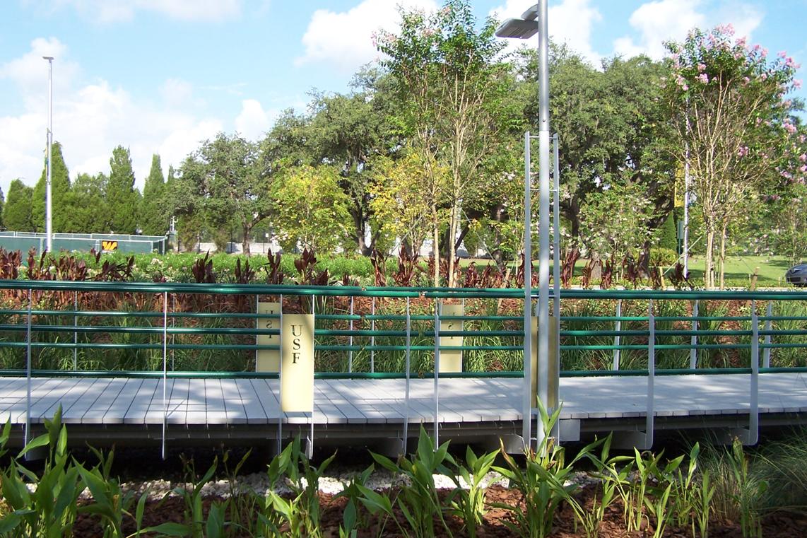 Project Location: USF, Tampa Boardwalk Design: Calvino Architecture Studio Site Engineering: Hamilton Engineering, Tampa, FL Construction Manager: Williams Company, Tampa, FL Steel Fabricator: Unlimited Welding, Orlando, FL. Concrete Piles: HJ Foundation, Miami, FL. Painting Contractor: Service Painting Contractors, Tampa, FL Composite Decking: Errington Construction, Clearwater, FL.